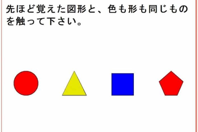 The computerized assessment battery for cognition (C-ABC). The figures-recognition memory test is shown: “please touch the figures with same color and shape as those presented before.” Credit: Kanazawa University