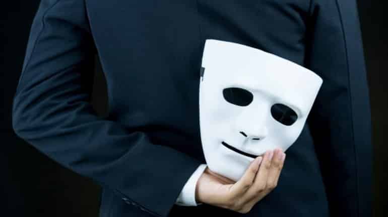 This shows a man holding a mask behind his back